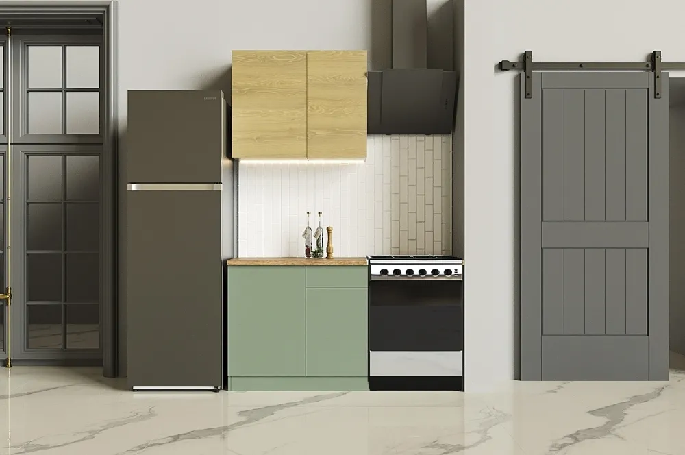 Ручки, столешница, стеновая панель, мойка, смеситель и бытовая техника продаются отдельно.